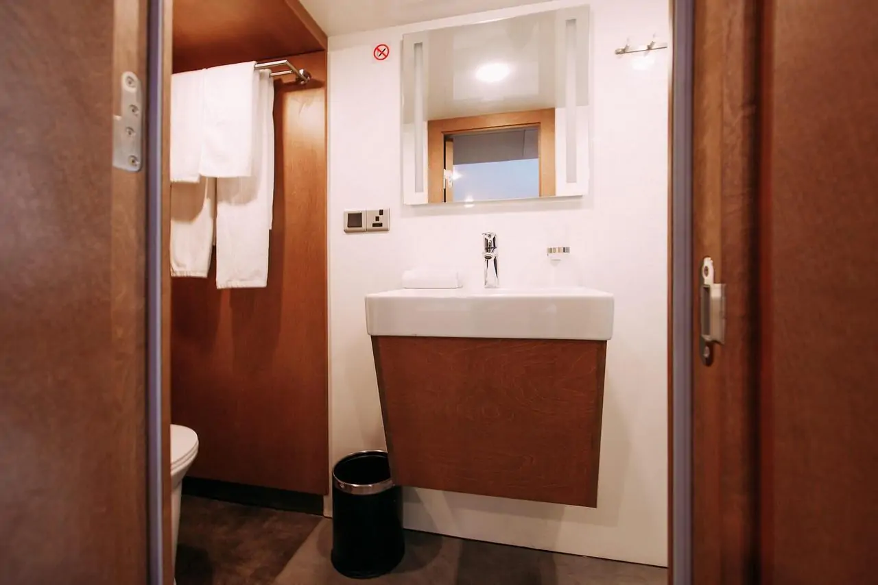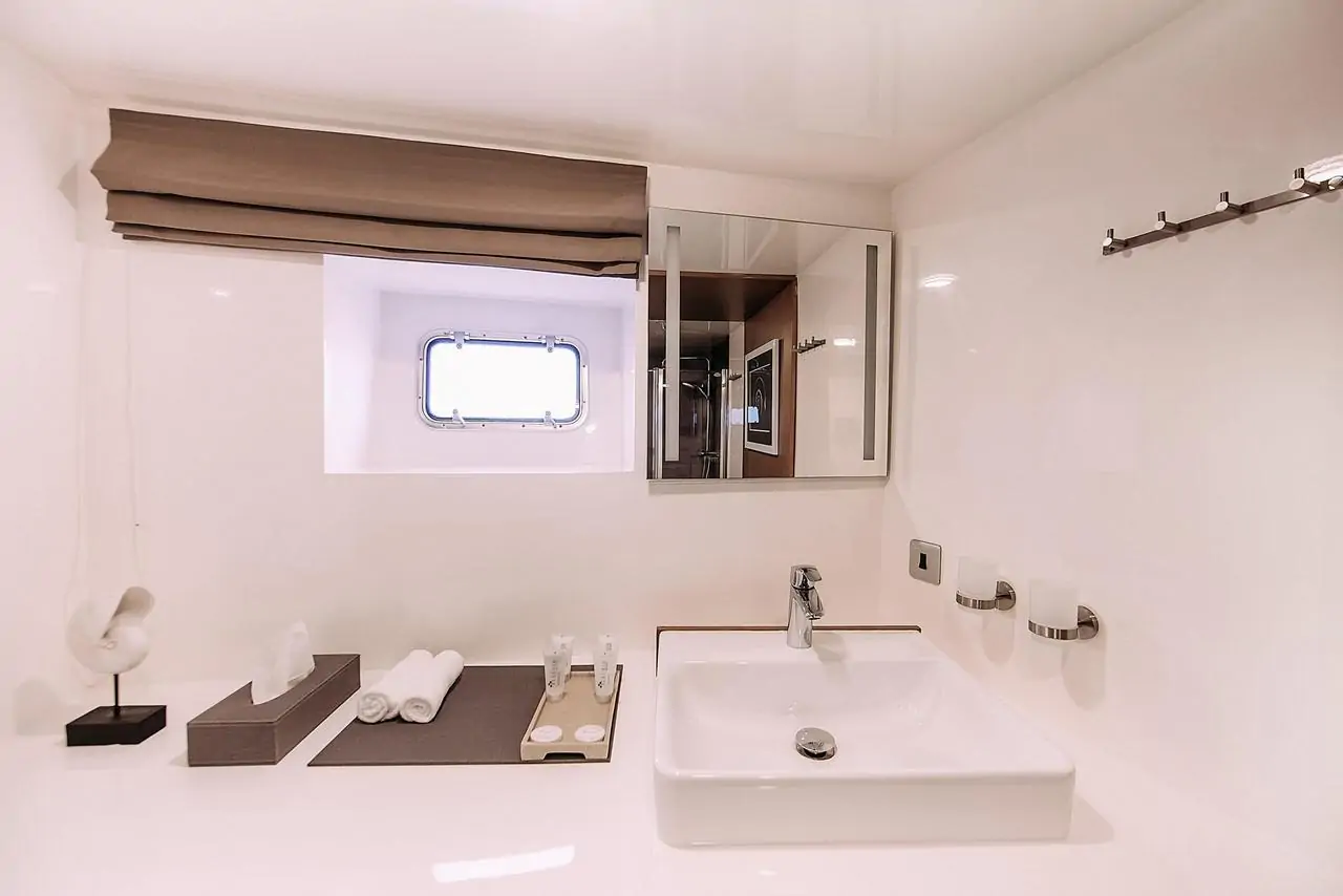 In Alice cabins you will feel the comfort and coziness of an expensive hotel, but unlike a hotel on board our yacht, you will see the ocean outside the windows! Each of the cabins (there are nine in total) is individual in its own way, but all have a pleasant design and style. All of them are perfect for your rest and relaxation.