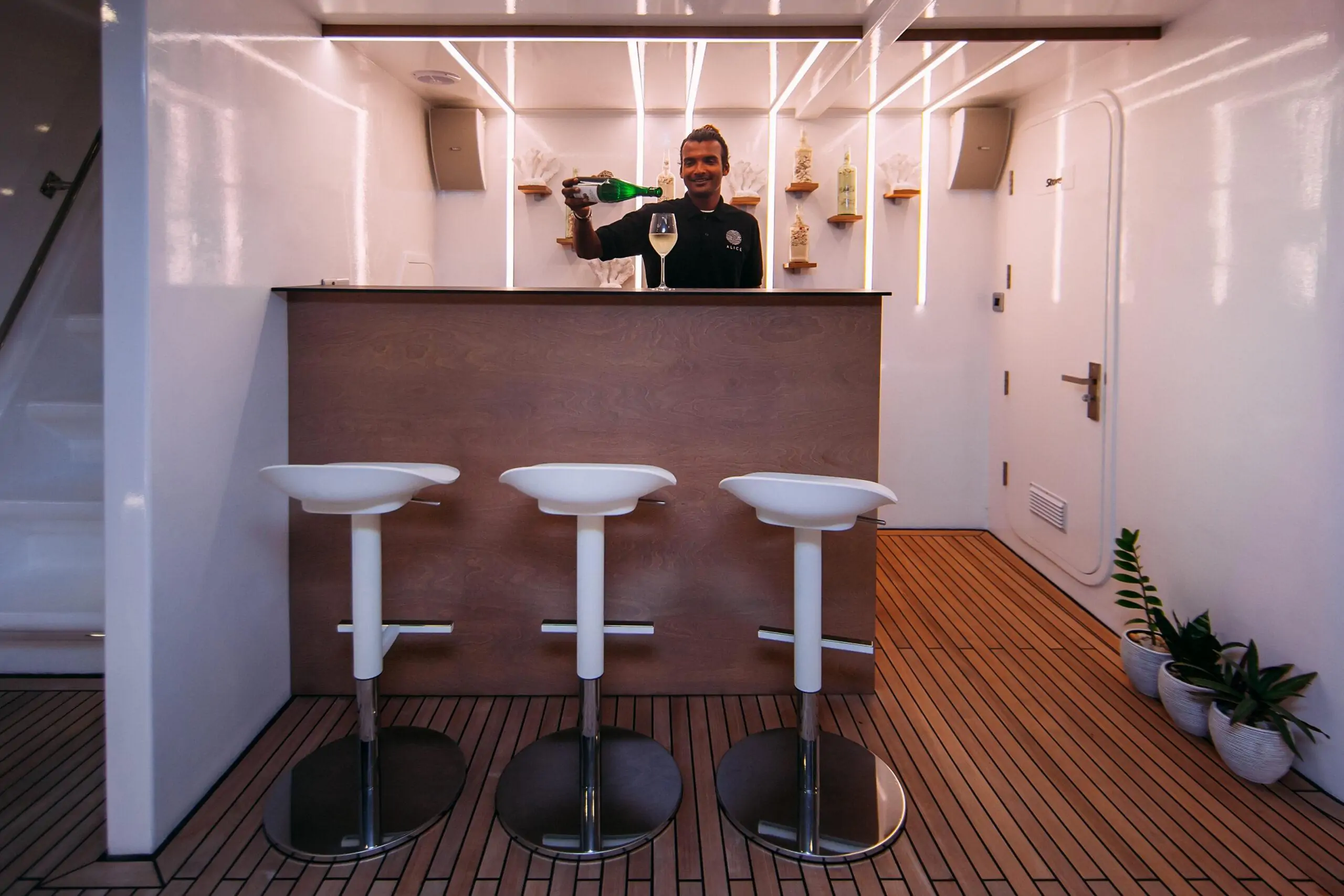 I would like to tell you about our captain separately. His name is Mohamed Adil, he was born and raised in the Maldives, so the passion for sea travel is in his blood. Mohamed speaks good English, he has extensive experience in yacht management (12 years), has all the necessary licenses, and also Mohamed is well versed in the local culture. Our captain previously worked as a managing consul on about. Velidu, so he has experience in management. He has received prestigious awards, including the Best Yacht Crew Award, which he received in 2018 from the Maldives National Aquatics Association. Mohamed is a first-class captain and a good leader of his crew, so you are guaranteed safety and comfort aboard Alice.