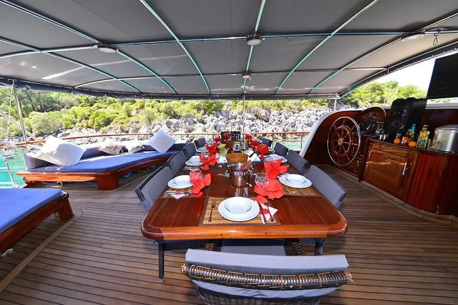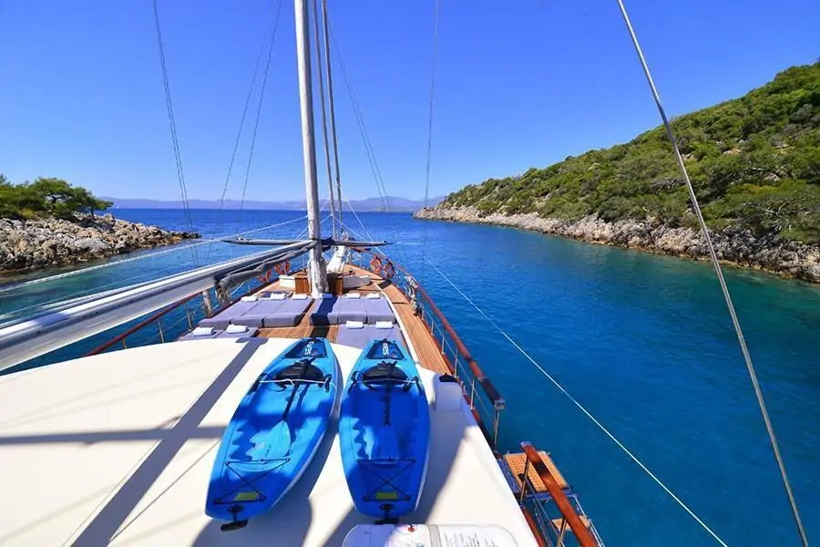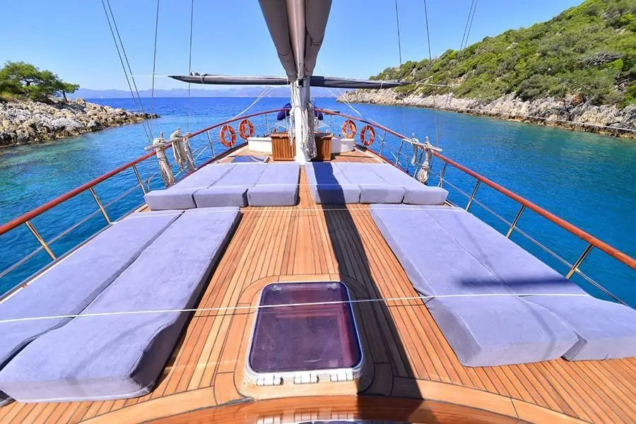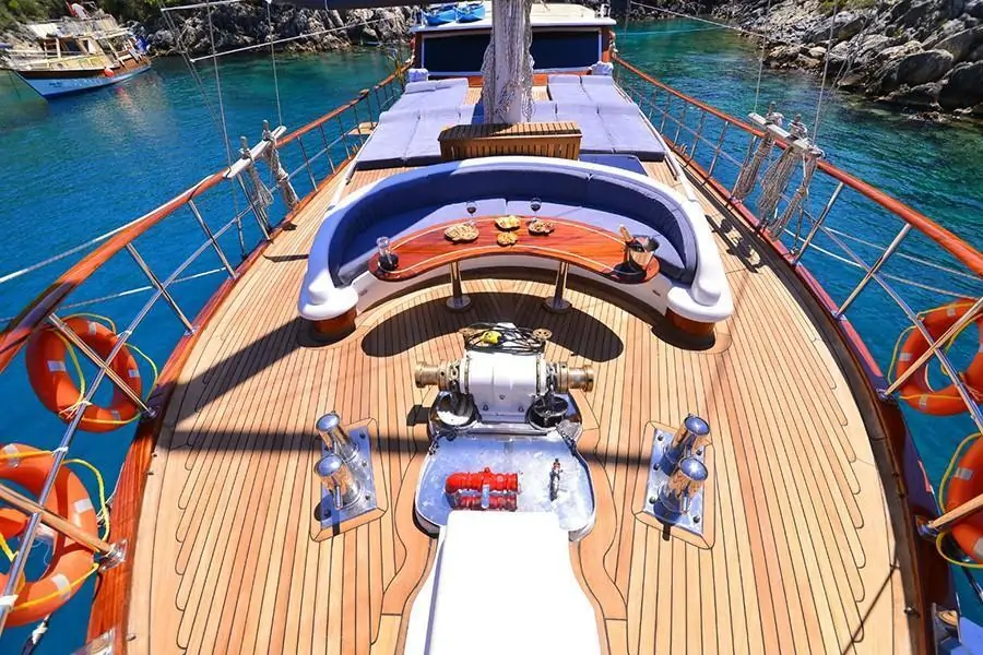 Як провести незабутній тижневий відпочинок на морі? Орендувати традиційний турецький човен, гулет! Сучасний Гулет MEHMET AYAZ – це комфортабельне судно, на борту якого є все, що потрібно для комфортабельного відпочинку: каюти, санвузли, кухня, холодильник, пральна машина, кондиціонер та палуба зі столиками для відпочинку невеликої компанії. Замовте першокласний морський тур на Гулет MEHMET AYAZ!