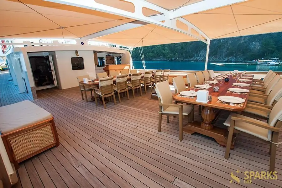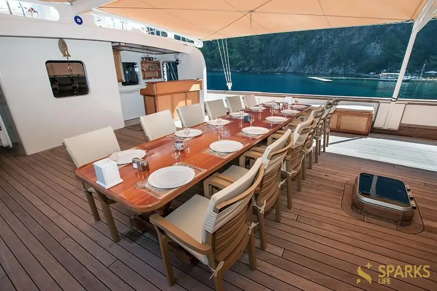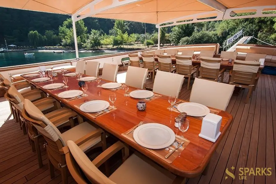 Вирушайте у захоплюючу подорож на борту гулета Tersane 8. Це сучасне комфортабельне судно відмінно підійде для відпочинку та релаксу великої компанії від 10 до 20 осіб. Відмінне рішення для корпоративу, чи морського туру в компанії рідних та близьких.