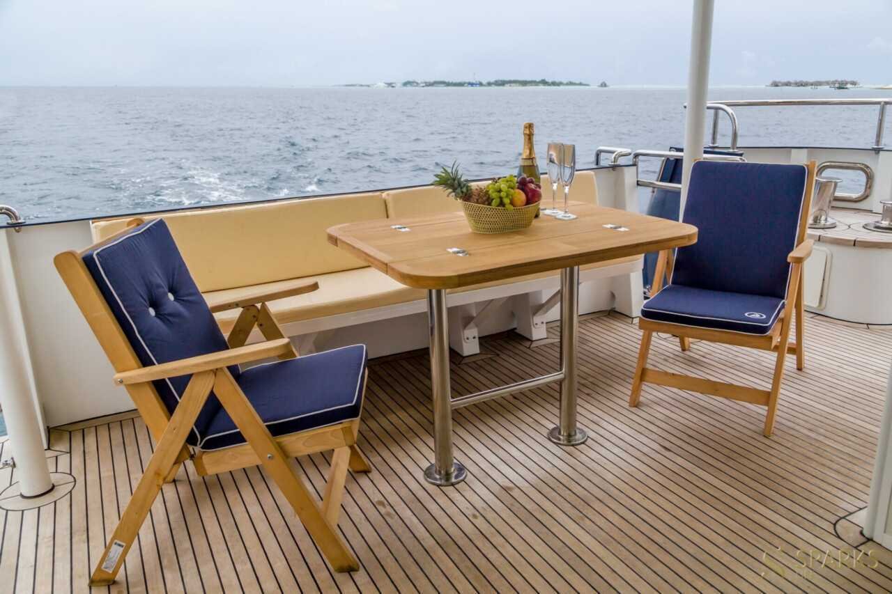 Моторна яхта F Yacth – продукт розробки українських майстрів. Великий сучасний човен з повним набором різноманітних електронних систем, з просторим екстер’єром та затишним інтер’єром. Тут можуть розміститися до 8 гостей у 4 каютах. Якщо ви хочете орендувати яхту на Мальдівах та отримати високу якість за відносно невеликі гроші, Моторна яхта F Yacth – це те, що потрібно.