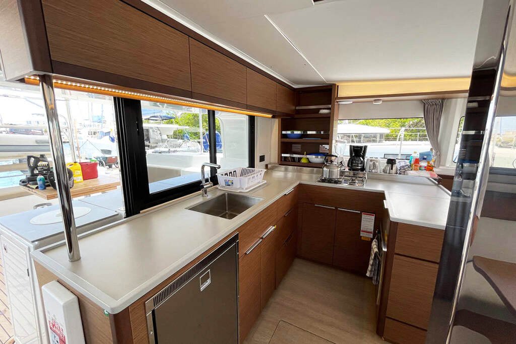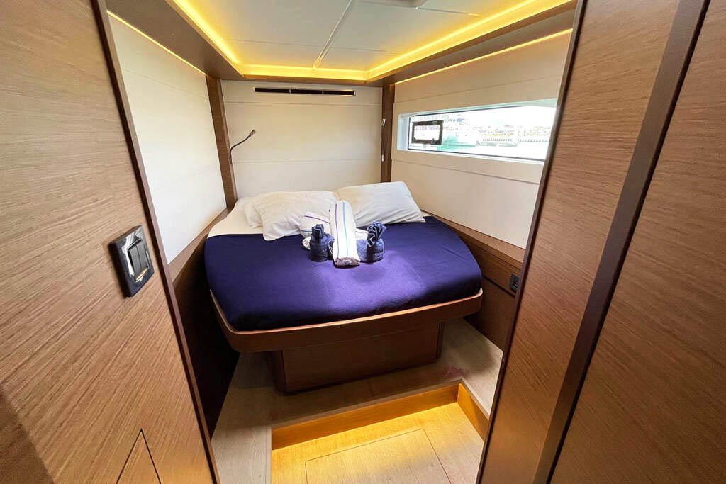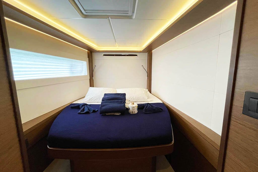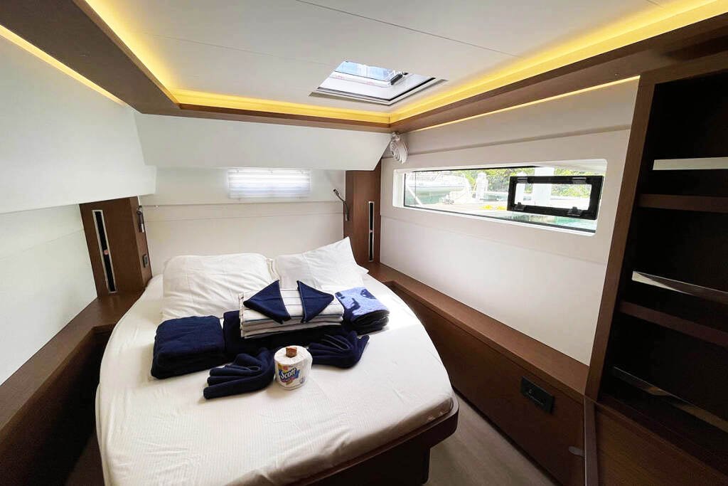 Наш катамаран має 4 комфортні двомісні каюти, розраховані на 8 осіб та 4 окремі санвузли (туалет/душ), простора зона відпочинку та кухня, величезна палуба для засмагання. Борт оснащений кондиціонером, опріснювачем, генератором, інвертером, електричними туалетами.